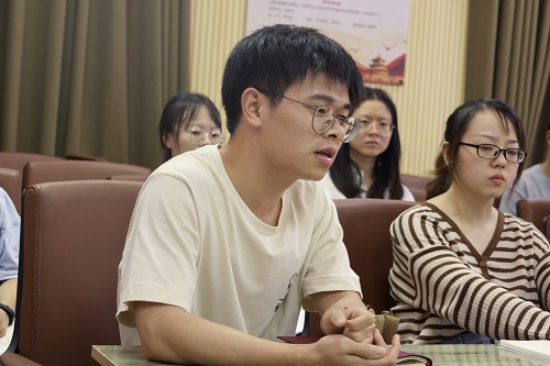 2019级研究生吕飘同志讲述了自己在花垣县望高村望高小学支教一年的经历与感悟。他谈到作为球盟会的研究生党员,学习党史不能仅仅停留在书本,要把学史与实践相结合,用满腔的热血和担当的精神去服务人民,奉献社会。在支教期间,他参与脱贫攻坚的工作中切身感受到了基层老党员在工作岗位的坚守与付出。吕飘同学鼓励和号召大家,作为农大学子一定要走向乡村,深入基层,了解乡村,才能振兴乡村。