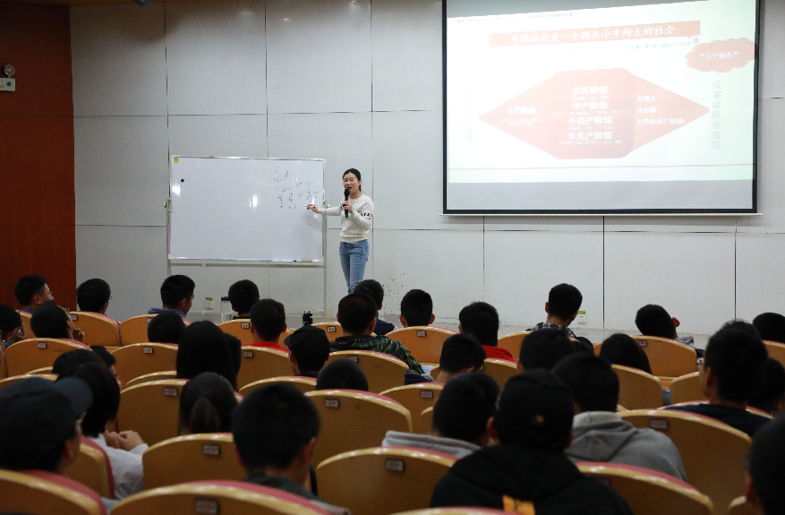 课堂在反映全面内战爆发时国共双方实力的两组数据对比中开始,继而引出中国共产党克敌制胜的三大法宝是抓住了中国“革命的关键环子”——农民的土地问题。然后,黄跃红老师站在大历史角度,从“抓住中国革命中心问题的重大意义”和“中国共产党对农民土地问题的政策策略探求与实践效应”两个方面,旁征博引,层层递进,同时灵活采用集体朗读、选人唱歌、学分奖励等有趣的互动形式,使同学们更深刻地认识到土地问题的重要性,也认识到了解决土地问题的极端重要性,也明白了中国共产党之所以能凝聚中国最广大的民心和民力的秘诀是三大法宝,对当代的启示是毫不动摇坚持辩证唯物主义世界观方法论、坚持以人民为中心的发展观、永葆初心本色和坚持马克思主义、毛泽东思想的指导思想地位。