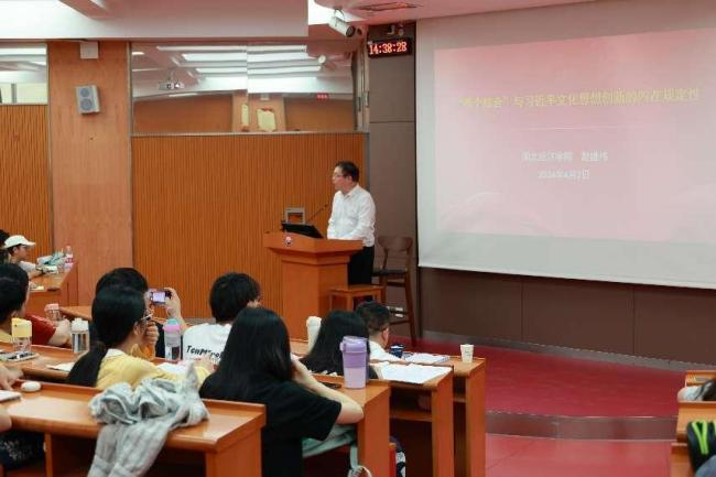 此次学术讲座系公司2024年马克思主义理论学科发展系列学术讲座之五、2024年球盟会对口协作系列学术活动之五、2024年思政本科专业“蹲苗计划”系列学术讲座之三。讲座中,赵教授观点新颖,内容丰富,启发性强,对公司师生更好地学习理解习近平文化思想的理论精髓与创新价值具有重要意义。(审稿人:丁凯)