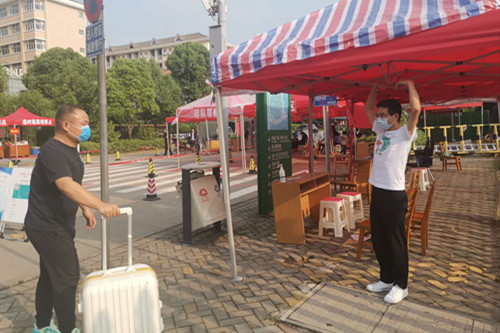 由于防疫期间校园实行封闭式管理,校外车辆无法进入校园。针对这种情况,球盟会结合正在开展的主题党日活动,倡议开展“爱心车”志愿服务行动,成立公司志愿服务车队。研究生辅导员罗杰和各年级的班主任老师们当起了“搬运工”,开车到公司北门出入口接员工到员工宿舍园区门口,再到寝室把员工行李搬到车上,又从宿舍区将员工行李运送到北校门外等候点。同时,老师们还当起了“快递员”,到校门口附近的快递公司,为路途遥远没有来校园的员工邮寄行李。一天下来,罗杰的“爱心车”来回跑了二十多趟。当天晚上7点多,下起了倾盆大雨,听说来自衡阳的2019级马克思主义中国化研究专业的研究生刘颖要去赶高铁,罗杰又毫不犹豫地开车把员工刘颖送到了长沙火车南站,并叮嘱她一路注意安全。