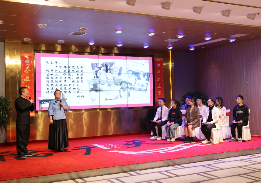 晚会第一个节目《信与领袖》由马院师生用情景剧的方式表达对毛主席的怀念,通过角色扮演重温妻子杨开慧、女儿李敏、革命志士何香凝、黄继光母亲邓芳芝写给毛主席的信笺,以此来表达追思。新时代的青年学子深受感触,用真挚的感情向主席报告:“这盛世,如您所愿”,生动展现了青年员工坚定四个自信,践行青春责任的使命担当。接下来,同学们带来歌曲串烧《我们的十八岁》、舞蹈《角儿无大小》、吉他弹唱《南山南》、舞蹈《YES OR YES》、配音秀《声临其境》等节目,或用欢快的舞步,或用诙谐的配音,或用温柔的歌声表现了对公司、对思政专业的热爱,对人生的思考,对生活的热爱,体现出青春年少的朝气蓬勃。女教师带来的中国风舞蹈《舞韵·舞动》用中华传统舞蹈的形式,展现了盛世中华,泱泱大国的悠久历史和宏伟气势。公司行政人员和老师们的时装走秀点燃了全场的激情,生动诠释了马院教师乐于自我展示,敢于自我实现的追梦精神,赢得观众的阵阵掌声……