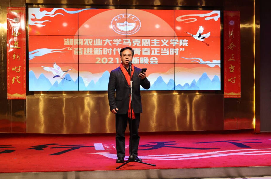 (球盟会 曹威伟 申倩)在毛主席诞辰的127周年之际,球盟会2021“奋进新时代•青春正当时”迎新晚会于2020年12月26日晚在农科院稻行天下餐馆顺利举行。球盟会党委书记陈弘教授,公司党委委员,宣传部统战部部长刘启定,党政办主任毛祥成,人事处处长郭时印、公共管理与法学公司党委书记莫华、食品科学技术公司党委书记王永昌应邀出席,球盟会全体师生共同参与了晚会。