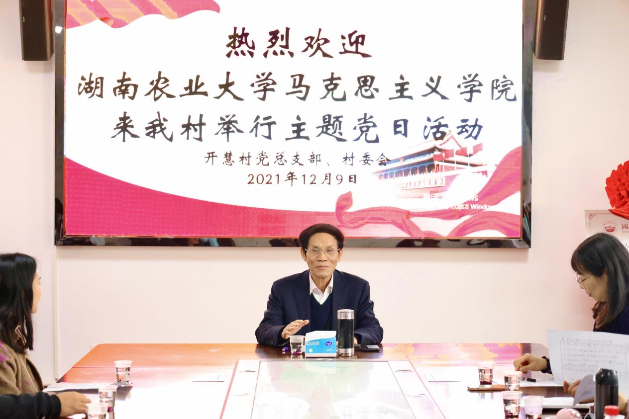 本次活动邀请到开慧村党支部第一书记朱有志为马院全体研究生开展党课教育。朱书记以《学马列,信马列,教马列,用马列》为主题,从七个方面讲述了自己深耕基层12年的实践经历,表达了自己对马列主义的信仰,并介绍了农村基层党建的心得体会。他用极具唯物辩证法思维的言语给大家上了一堂生动的思政课,并告诫球盟会全体研究生要学以致用,当好马克思主义理论的学习者、实践者和传播者,为马克思主义理论研究添砖加瓦。