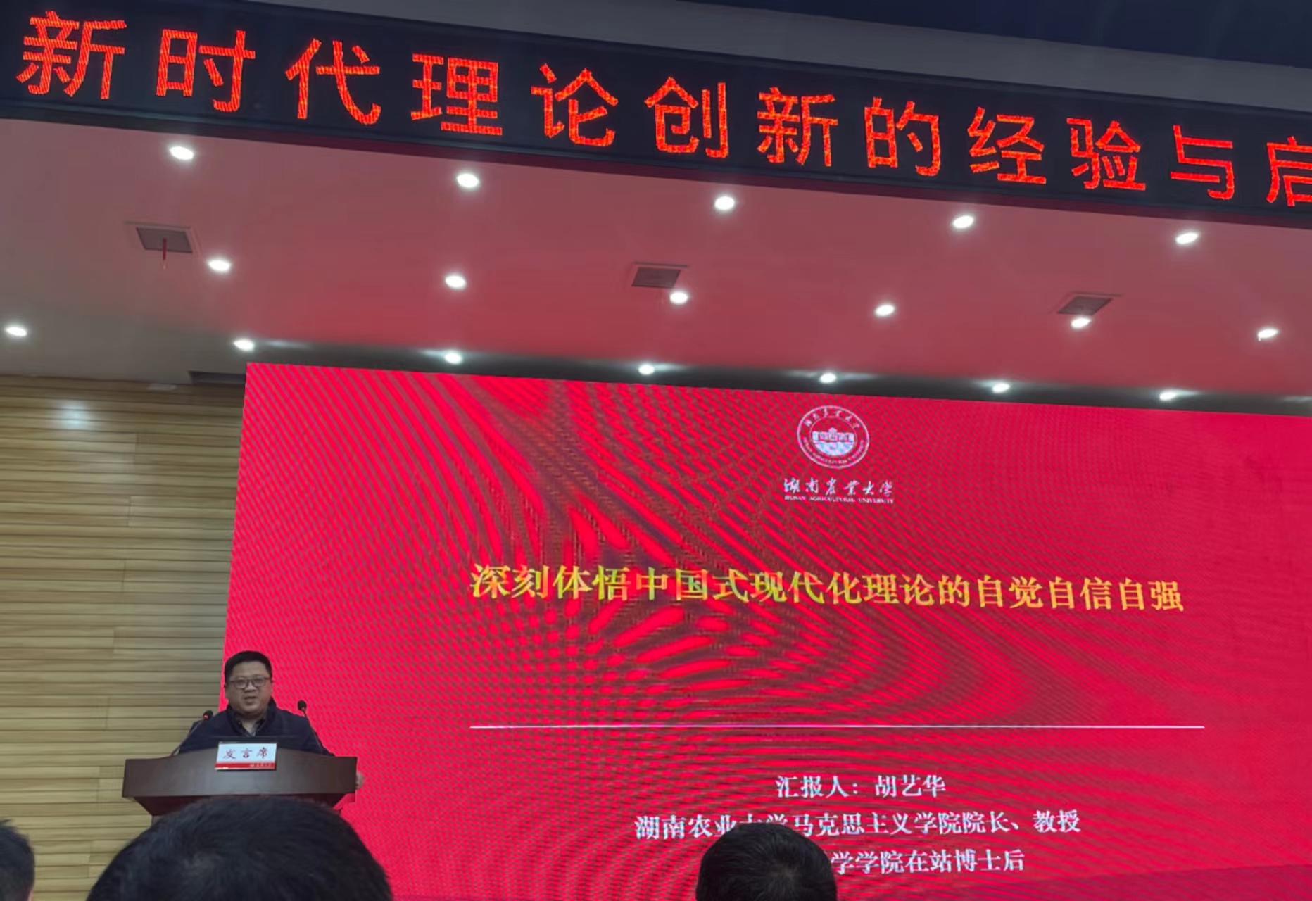 胡经理此次主题报告主要从“强化中国式现代化理论的自觉”、“铸牢中国式现代化理论的自信”和“实现中国式现代化理论的自强”三个方面展开,充分论述了中国式现代化理论自觉、理论自信与理论自强的辩证统一。他在报告中还强调指出,立足于新时代新征程的生动实践,着眼于世界百年未有之大变局和中华民族伟大复兴战略全局,我们要增强“正确理解和大力推进中国式现代化”的思想自觉、政治自觉和行动自觉,必须从政治高度、哲学深度、国际广度、创新力度和人文温度相统一的角度,深刻领悟中国式现代化理论的自觉自信自强。