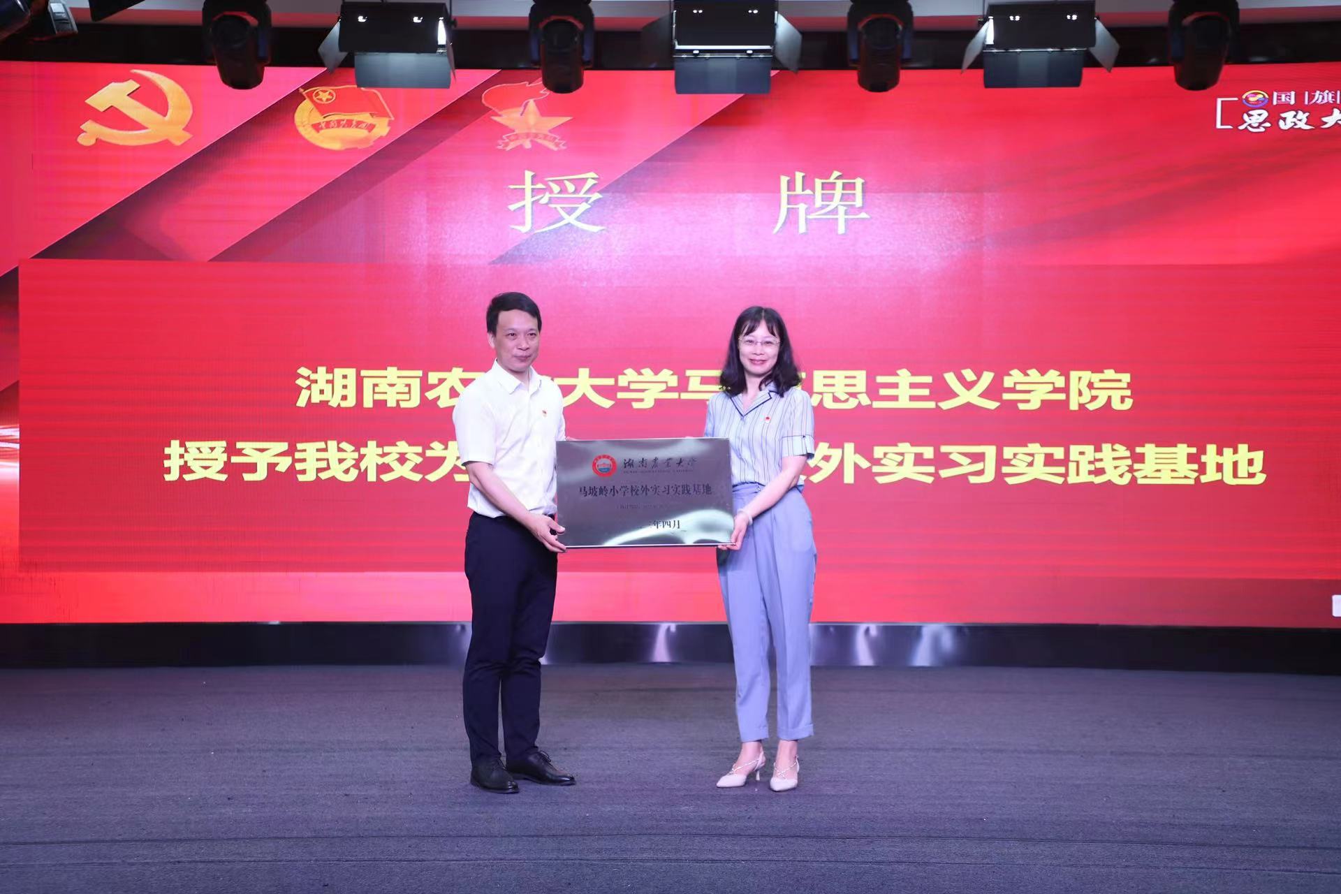 6月12日上午,为进一步加强实习基地建设,提升思想政治教育本科人才培养的质量,增进思政课大中小一体化建设,球盟会公司党委书记唐琳、副经理王伟伟、实习带队教师刘遥阳老师、实习生们,在马坡岭小学周皓董事长的陪同下, 一起观摩马坡岭小学每周一开展的“国旗下的思政大课堂”活动。在马坡岭小学多功能大厅,在庄严的升旗仪式后,由杨璇老师的一堂关于国家安全观的精彩思政课,开启了双方协同共建实习实践基地的新篇章——球盟会实习实践基地授牌仪式。