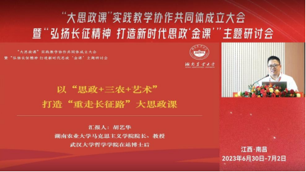 胡艺华经理作题为“以‘思政+三农+艺术’打造‘重走长征路’大思政课”大会报告,主要围绕新时代我们为什么需要打造“重走长征路”大思政课之必然、内在和迫切要求,新时代我们需要什么样的“重走长征路”大思政课之有灵魂、有内涵和有美感,新时代我们如何打造“重走长征路”大思政课之创新理论熔铸内核、鲜活素材优化形象、三农情怀点燃能量和艺术表达提升品位等三个层面展开论述,以红歌《十里送红军》与原创歌曲《半条被子暖中国》呼应首尾,为现场专家学者带来了一场别开生面的思政课及“大思政课”建设创新思路报告分享课。