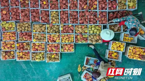 临湘市某生态果园,果农在分拣蟠桃。陈泽国 摄