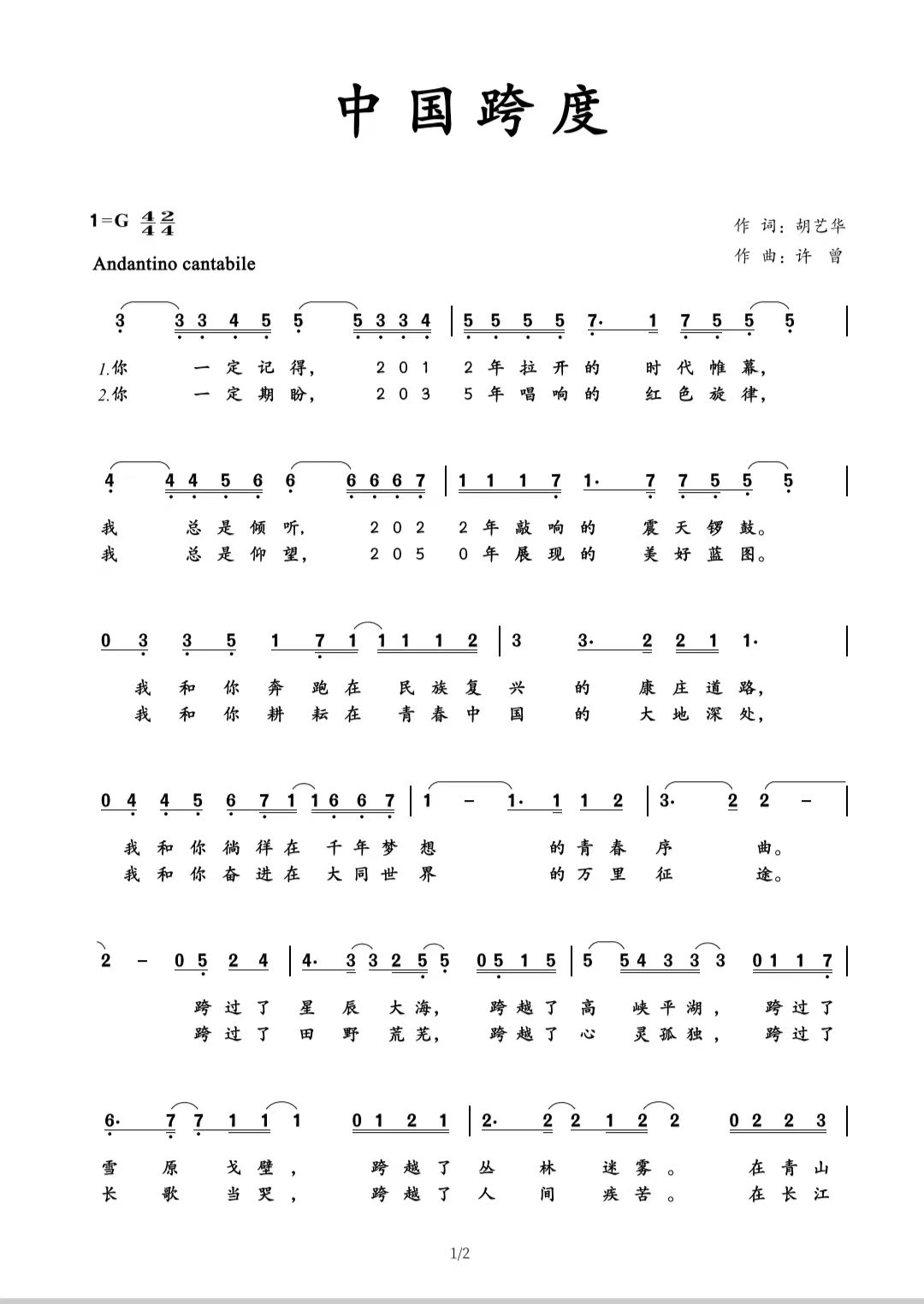 《中国跨度》是一首以“学习新思想,礼赞新时代、奋进新征程、谱写新篇章”为主题的原创歌曲。歌曲以“思政+三农+艺术”的理念,以新时代十年的盛世图景为意象, 用凝练唯美、意境高远的歌词,婉转悠扬、明快向上的曲调,充满激情、催人奋进的旋律,热烈奔放、清雅浑厚的演唱,深情讴歌了新时代十年的独特地位和深远意义,生动展现了新时代十年的非凡历程和辉煌成就,由衷表达了新时代广大党员干部和人民群众高举旗帜奋进新征程、紧跟核心夺取新胜利、团结实干谱写新篇章的历史自信和前进定力。