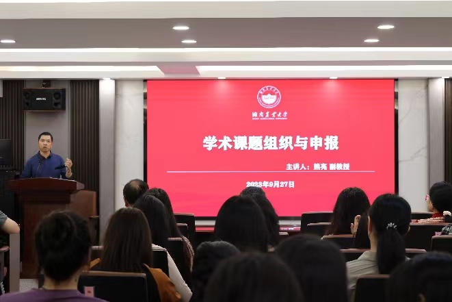 熊亮老师以自己指导的研究生创新课题和自己申报的教育部人文社科基金课题为案例,从选题、目的、意义、研究成果述评、研究基础、研究方法、预期研究成果等进行逐条分析讲解,讲述过程条理清晰、干货满满,在场的同学们一致反映颇有收获。