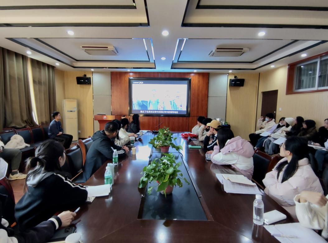 毛泽东诗词是展现现代中国沧桑巨变的宏伟史诗,是毛泽东奋斗人生和心路历程的真实写照。活动围绕毛泽东诗词展开,在座的党员同志分享了《七律·人民解放军占领南京》《西江月·井冈山》《念奴娇·井冈山》《水调歌头·重上井冈山》 等30首诗词,党员同志用声音传递豪情,抑扬顿挫、慷慨激昂,随后结合专业知识和研究方向对诗词的创作背景、艺术表现、地位意义、时代价值等方面展开深入分析。每一首毛泽东诗词,都是毛泽东对特定历史事件和人生经历的体验或感悟,党员同志纷纷表示通过重温誓词、分析诗词、观看影片等方式加深了对毛泽东“实事求是”“群众路线”“独立自主”等思想的理解。