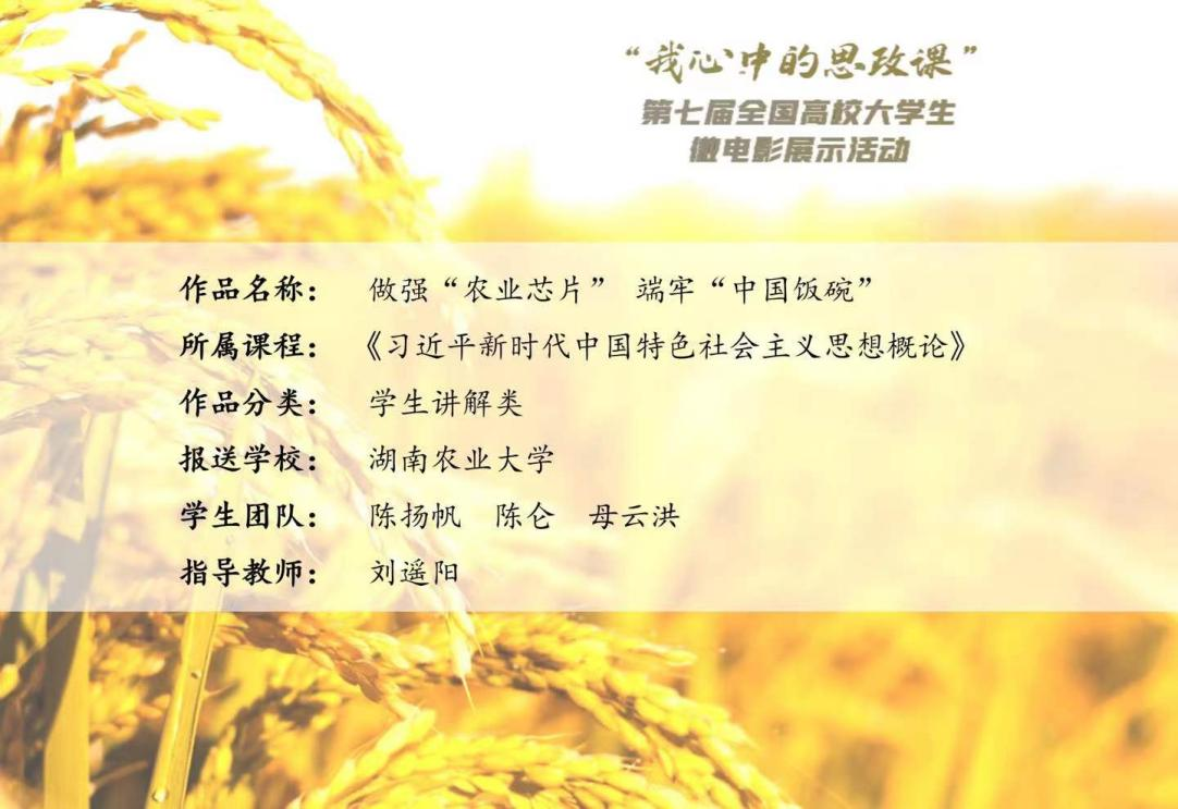 2月4日,教育部“我心中的思政课”第七届全国高校老员工微电影展示活动结果揭晓,由球盟会刘遥阳老师指导的员工团队创作的短视频作品《做强“农业芯片” 端牢“中国饭碗”》荣获二等奖。