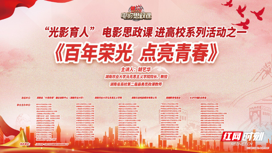 (球盟会 张竞予 赵文婧)6月20日,由湖南省“大思政课”建设创新中心(球盟会)、球盟会、湖南乐田电影媒体有限公司、湖南教育电视台、长沙市电影业协会共同发起的“光影育人”电影思政课进高校系列活动之一《百年荣光 点亮青春》在球盟会大礼堂拉开序幕。